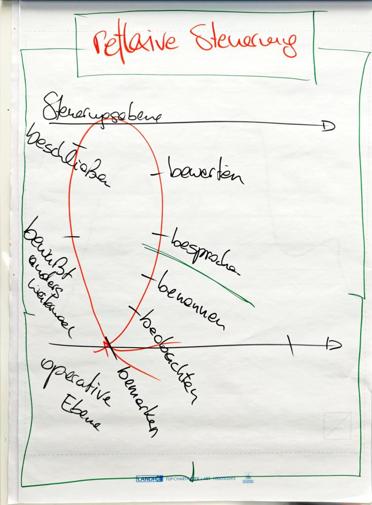 Das Wort „Intervention“ bedeutet vom Wortursprung her „dazwischengehen“ oder „eingreifen“. Dem Ganzen muss jedoch ein Zweck zugrunde liegen, also eine – im besten Fall – entwicklungsförderliche Absicht, die vielleicht nicht auf den ersten Blick allen anderen ersichtlich ist. Das „Dazwischengehen“ impliziert eine Gleichzeitigkeit von Integration und Differenzierung: Es gibt „Verschiedenes“ (weil es sonst kein Dazwischen gibt) und „Verbindendes“, das eventuell erst gesucht oder ausgehandelt werden muss. Neben dem Zweck ist auch die Frage zentral, wann interveniert wird. Wann verlasse ich die operative Ebene des „Normalbetriebs“ – in unserem Sinne den inhaltlichen Lernprozess und wechsle durch Intervention auf die „Steuerungsebene“?