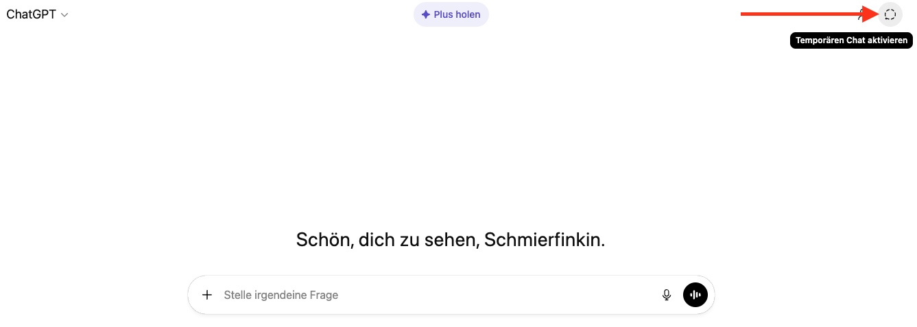 Auch wenn ihr das Training deaktiviert habt, werden eure Chats in der Regel gespeichert und erscheinen in eurer Historie. Für besonders sensible Anfragen – etwa wenn ihr vertrauliche Dokumente analysieren oder persönliche Situationen besprechen wollt – gibt es eine zusätzliche Schutzebene: den temporären Chat.
