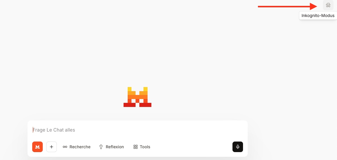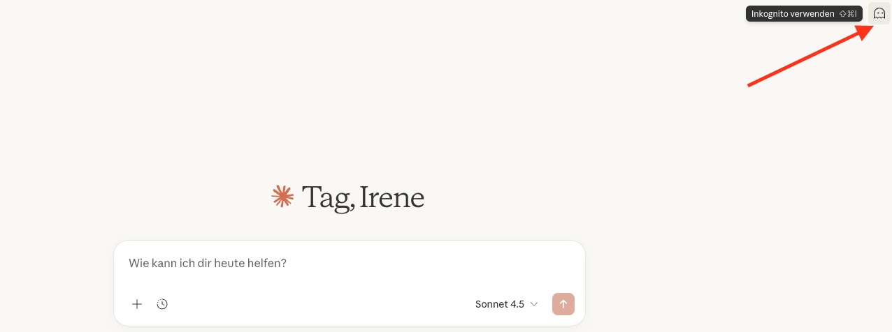 Auch bei anderen KI-Sprachmodellen findet ihr den temporären Chat rechts oben, meist als „Inkognito-Modus“: