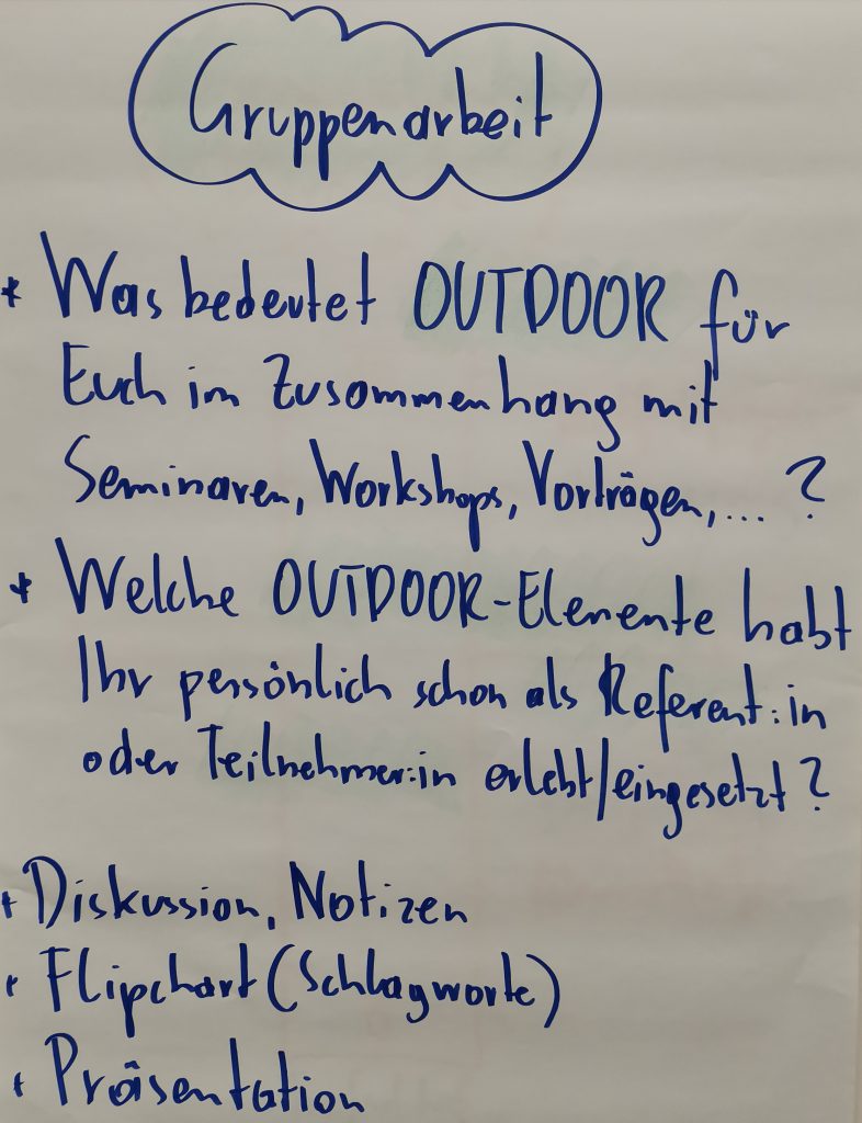 Am Ende konnten die Teilnehmer:innen besser einschätzen, welche Methoden zu einem produktiven Lernklima beitragen, wie sich Gestaltungsideen entwickeln lassen, die alle einbeziehen, und wie sich die erlernten Prinzipien auf eigene Seminare übertragen lassen. Ebenso wurden mögliche Grenzen sichtbar, die es bei der Integration von Outdoor-Elementen zu berücksichtigen gilt.