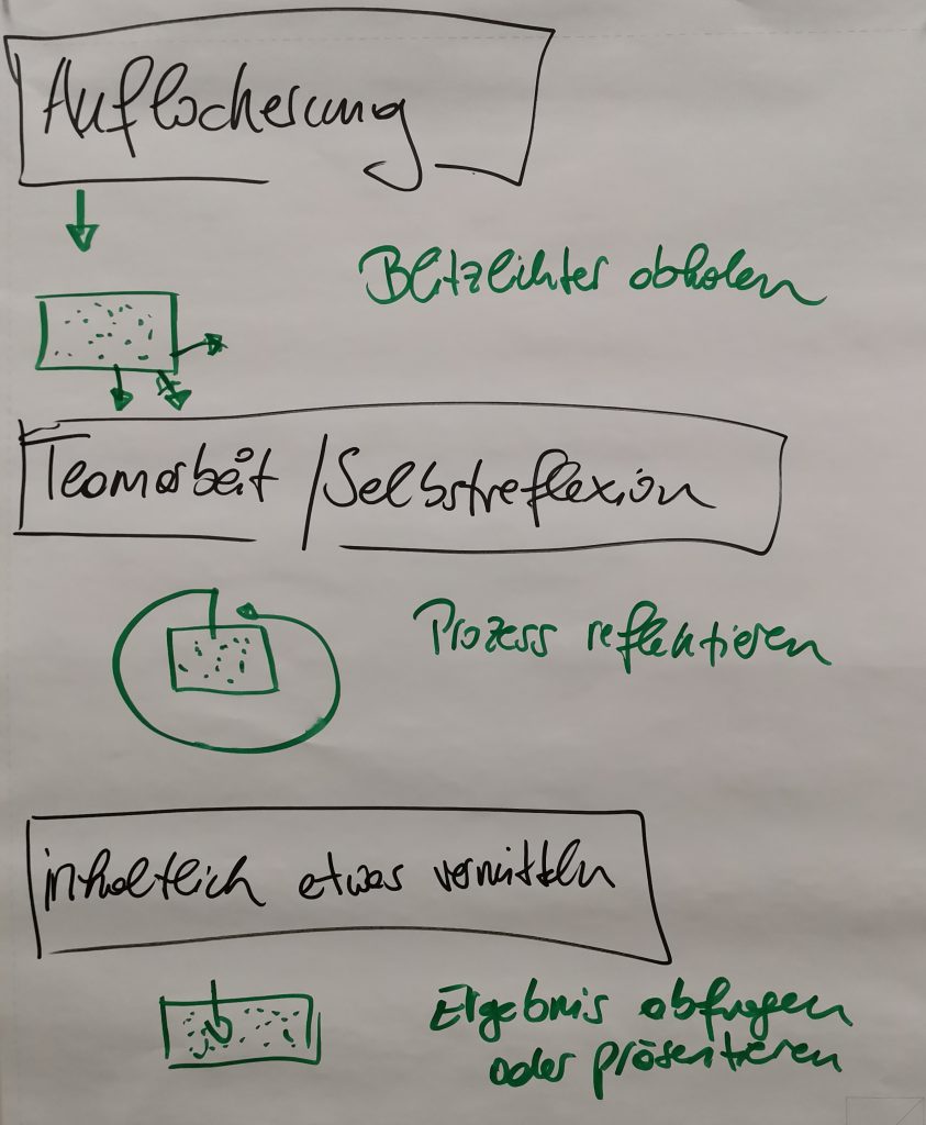 Umso wichtiger ist es, die Methoden gut und sicher anzumoderieren, gegebenenfalls flexibel anzupassen und so zu gestalten, dass niemand ausgeschlossen wird und dass sie für den Trainer oder die Trainerin authentisch umsetzbar sind. Wenn ich mich verbiegen muss, weil ich selber nicht von der Methode überzeugt bin, dann ist es besser, sie gar nicht anzubieten. Umgekehrt zahlt sich der Mut, sich raus aus dem Seminarraum zu wagen, oft aus: Frische Luft und Bewegung machen uns kreativer, offener und flexibler im Denken. Auch Stehsätze wie „neue Wege beschreiten“, „eine Schatzkiste finden“ oder „Türen öffnen“ bekommen durch die erlebten Methoden mehr Gewicht und tiefere Bedeutung.