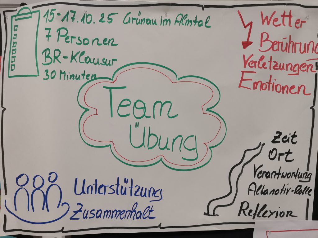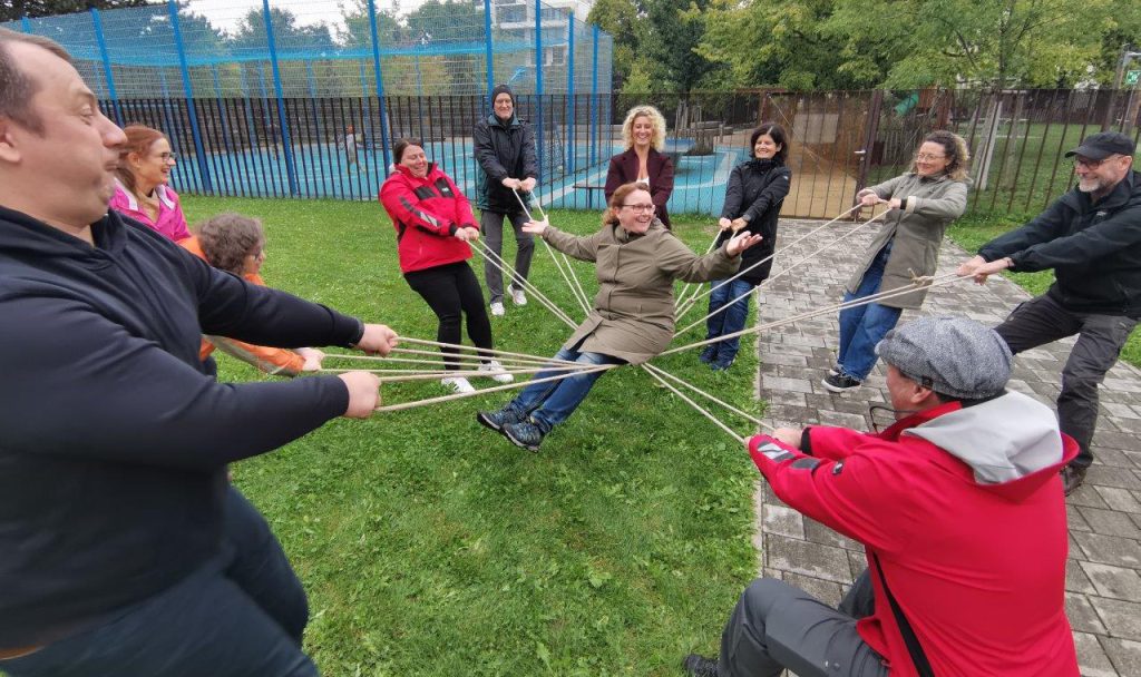 Die Teilnehmer:innen lernten unterschiedliche Methoden kennen und probierten diese direkt aus: vom Seilstern über Vertrauens- und Verantwortungsübungen bis hin zu einem Spaziergang der Sinne, Naturinspirationen und Statuentheater. Das regnerische Wetter machte den Praxisteil herausfordernd, zeigte aber zugleich, wie wichtig Flexibilität, passende Kleidung und methodische Anpassungen sind – und dass Outdoor-Elemente auch unter nicht idealen Bedingungen wirksam sein können. Möglichkeiten zur Reflexion der Methoden konnten ebenso erlebt und besprochen werden.