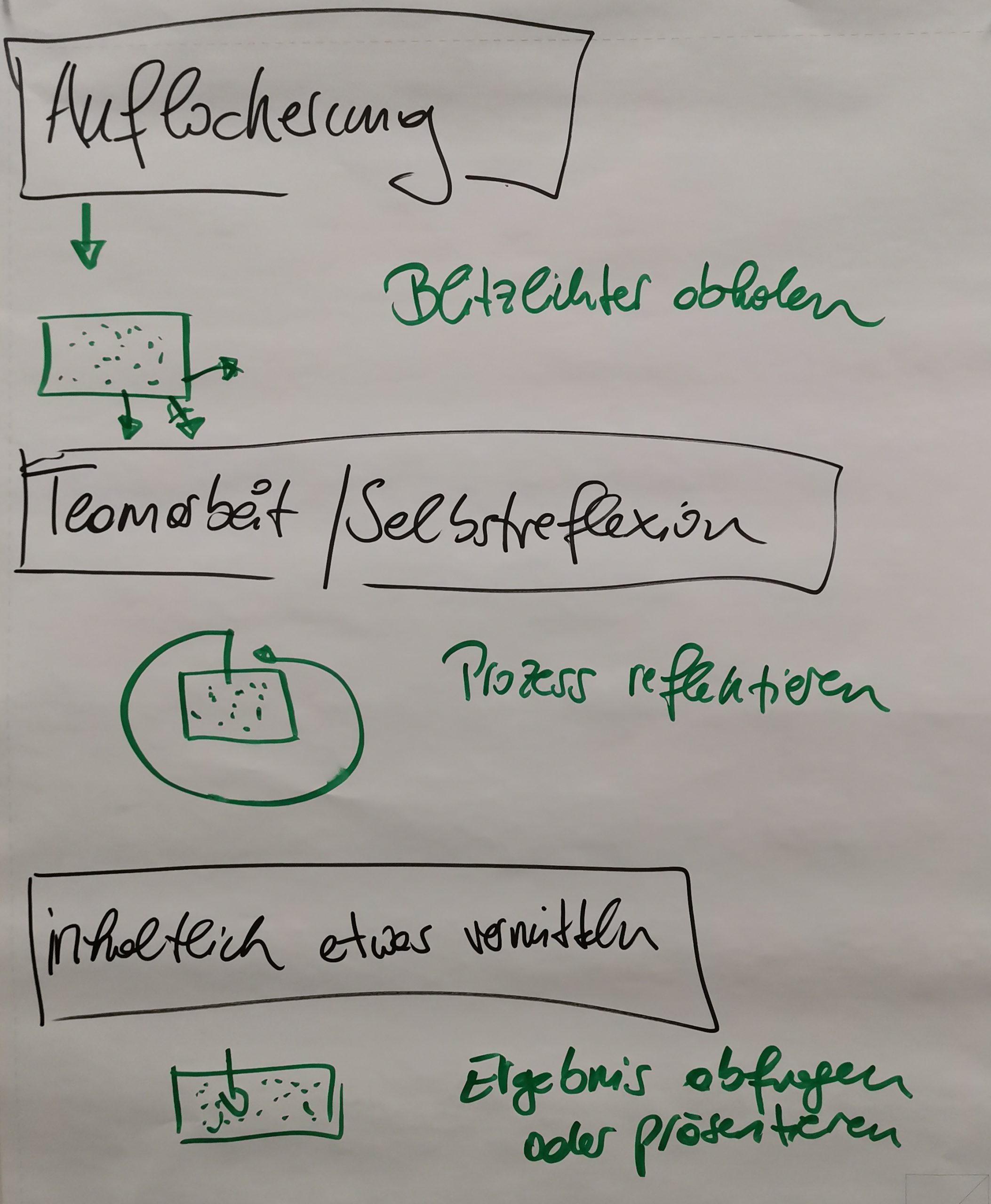 Umso wichtiger ist es, die Methoden gut und sicher anzumoderieren, gegebenenfalls flexibel anzupassen und so zu gestalten, dass niemand ausgeschlossen wird und dass sie für den Trainer oder die Trainerin authentisch umsetzbar sind. Wenn ich mich verbiegen muss, weil ich selber nicht von der Methode überzeugt bin, dann ist es besser, sie gar nicht anzubieten. Umgekehrt zahlt sich der Mut, sich raus aus dem Seminarraum zu wagen, oft aus: Frische Luft und Bewegung machen uns kreativer, offener und flexibler im Denken. Auch Stehsätze wie „neue Wege beschreiten“, „eine Schatzkiste finden“ oder „Türen öffnen“ bekommen durch die erlebten Methoden mehr Gewicht und tiefere Bedeutung.